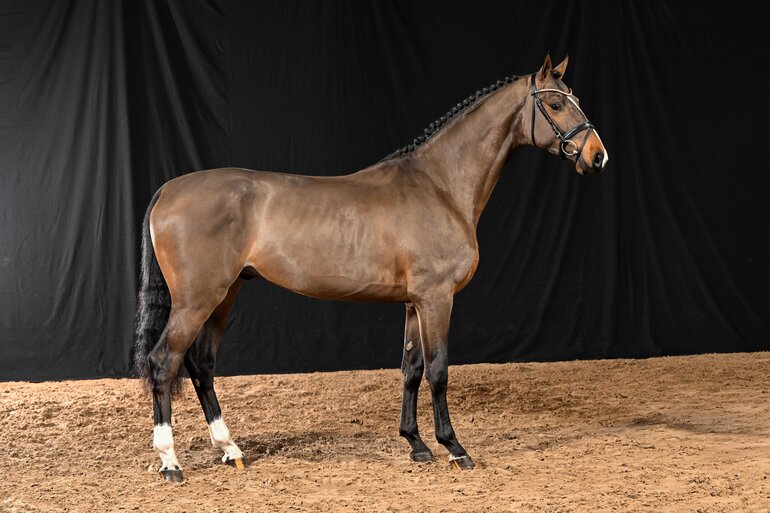 Beim Freispringen zeigt Chintoki Leichtigkeit und Elastizität, mit einer kräftigen, bergauf gerichteten Galoppade mit sehr gutem Rhythmus. Seine Sprünge sind kraftvoll und gleichmäßig, mit klarer Bascule und aktiver Hinterhand. Insgesamt überzeugt der Hengst durch harmonische Technik, Elastizität und deutliche Sprungfreude.